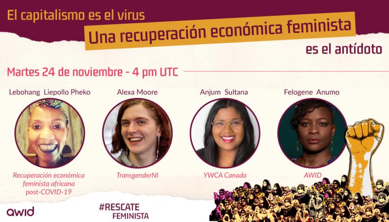 Te invitamos a participar en una conversación global sobre las cuatro iniciativas feministas que han diseñado los planes para un rescate y una recuperación económica feministas.