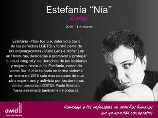 Mujeres como Agnes Torres, de México, fueron asesinadas debido a su identidad de género y orientación sexual; o Cheryl Ananayo, una activista ambientalista de Filipinas que fue asesinada mientras luchaba contra una compañía minera; o Ruqia Hassan, una periodista y bloguera independiente siria asesinada por sus críticas al Estado Islámico de Iraq y Levante (EIIL, ISIS en inglés). Y muchas otras.