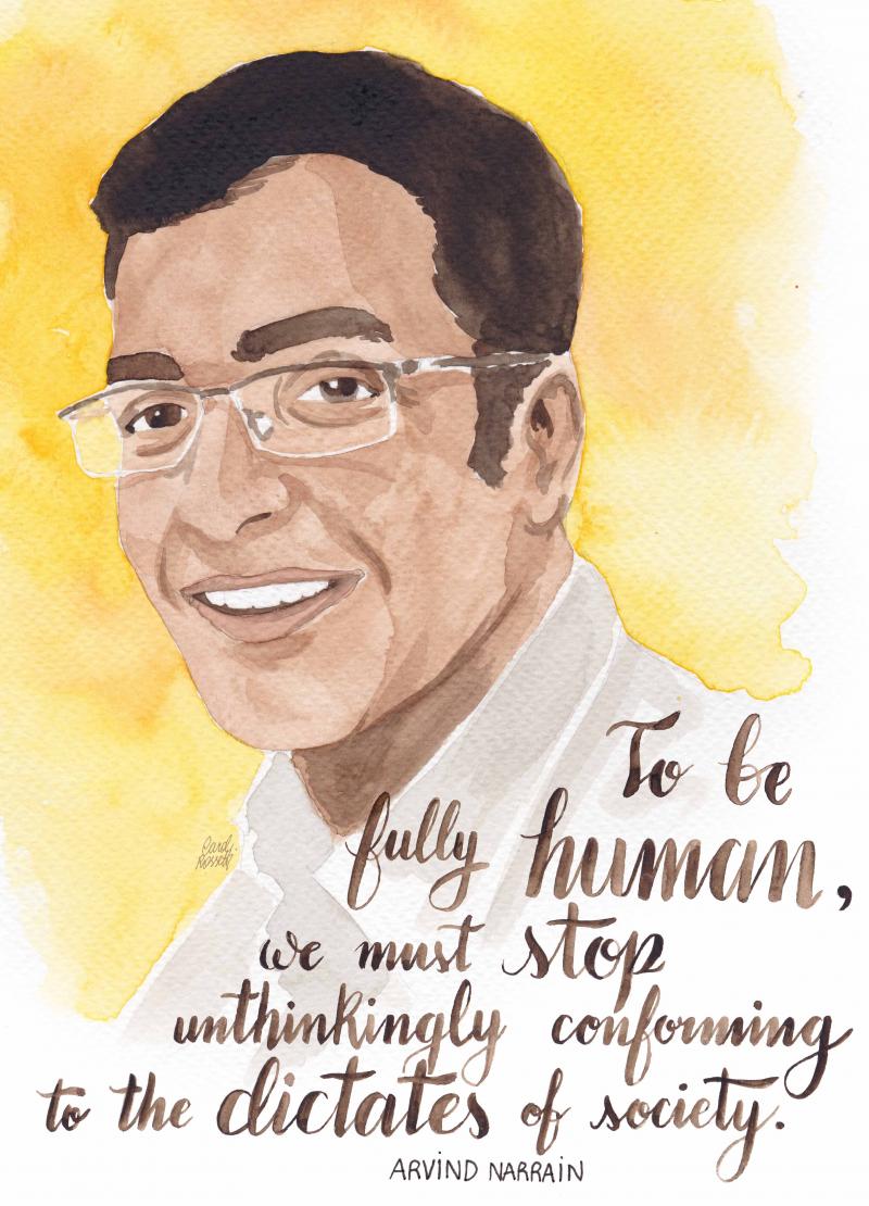 Así como es Directora en Ginebra de ARC Internacional, Arvind Narrain es también una de las fundadoras del Alternative Law Forum en Bangalore, India. Durante 2008 y 2009 se produjo una ola de violencia paramilitar en el estado de Karnataka; grupos nacionalistas hindúes atacaron a mujeres y hombres jóvenes que tenían diferentes formaciones religiosas, tan solo por asociarles con algún otra/o. El Alternative Law Forum, en un trabajo conjunto con otros tres grupos, inició acciones legales para hacer justicia con los perpetradores. Su trabajo se enfocó en demostrar, tal como se establece en la Constitución, que la violencia iba en contra de los principios fundacionales del país. Arvind describe este enfoque como actuar como un «ancla» contra el fundamentalismo en la India durante un momento de extrema polarización, por medio del uso de los valores constitucionales como un lenguaje común.