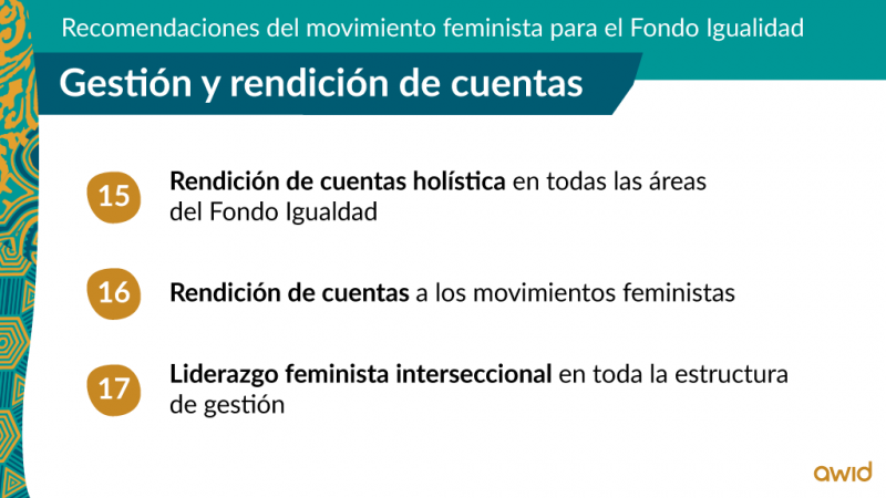Incorporar procesos de rendición de cuentas a los movimientos feministas en lo que respecta a la gestión y el monitoreo de las inversiones