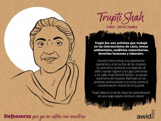 Trupti Shah 20 November 2020 Read in: Inglés Francés Español Category Derechos económicos, sociales y culturales Region Asia del Sur Date of death / disappearance 2016