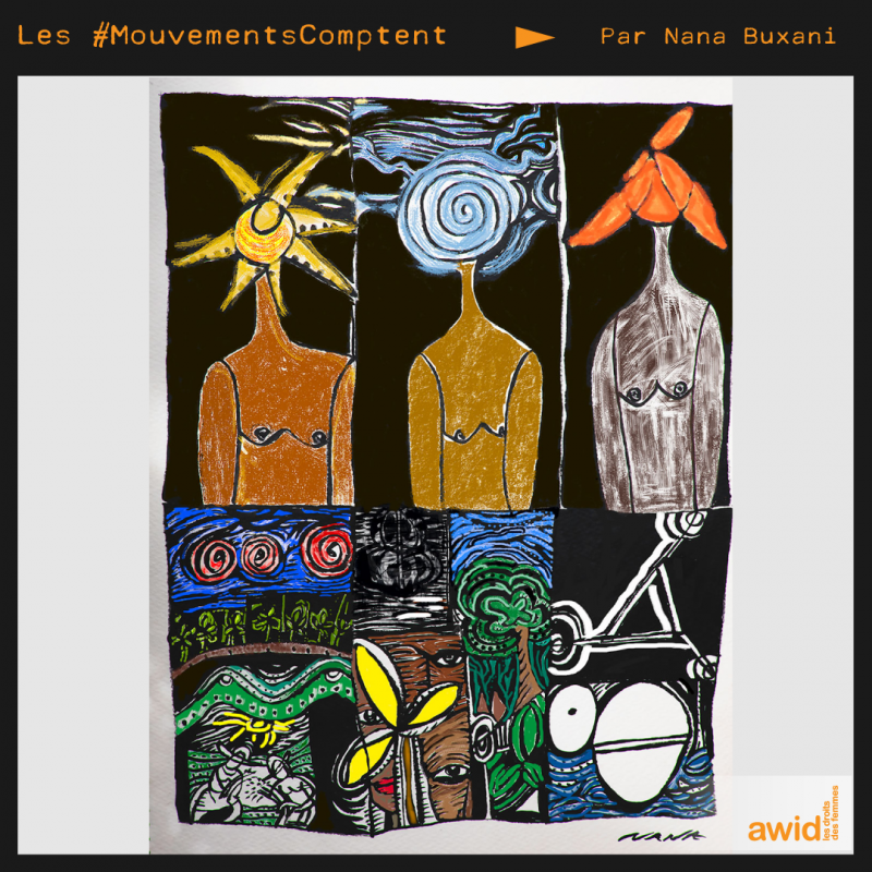 Nos #MouvementsComptent : des femmes qui prennent soins de notre mère la Terre, elles st mères de l’environnement | Illustration Nana Buxani