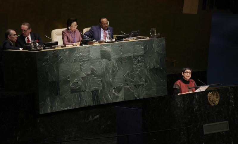 Cinquièmement, le texte de la Déclaration politique est faible et ne va pas assez loin pour encadrer les changements transformateurs essentiels pour réaliser l'égalité de genre. Nous, les femmes du monde, femmes unies par delà notre diversité, nous méritons beaucoup mieux que cela. Nous méritons que vous mettiez de côté vos différences idéologiques, politiques et religieuses afin de reconnaître pleinement et d’affirmer les droits fondamentaux des femmes et des filles et la justice de genre. Rien de moins. Nous avons besoin de la pleine réaffirmation de la Plateforme d'action de Beijing, mais également d’un engagement fort pour garantir ceci: