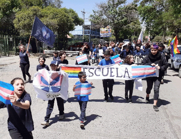 À Ñuñoa, à l'est de Santiago du Chili, la première école pour enfants trans d'Amérique latine accueille des enfants ayant été harcelé-e-s, exclu-e-s ou ne se sentant pas à l'aise dans le système éducatif traditionnel. Trente-sept élèves fréquentent l'école Amaranta Gómez, où ils et elles sont libres d'élargir et d'explorer leurs expériences d'enfants et d'adolescent-e-s transgenres.