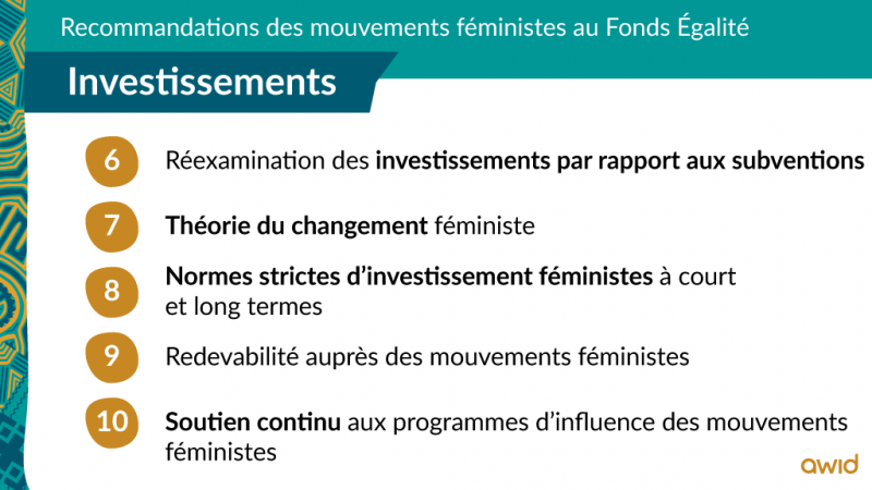 • Contribuer à faire évoluer le secteur des investissements et soutenir les programmes d’influence des mouvements féministes.