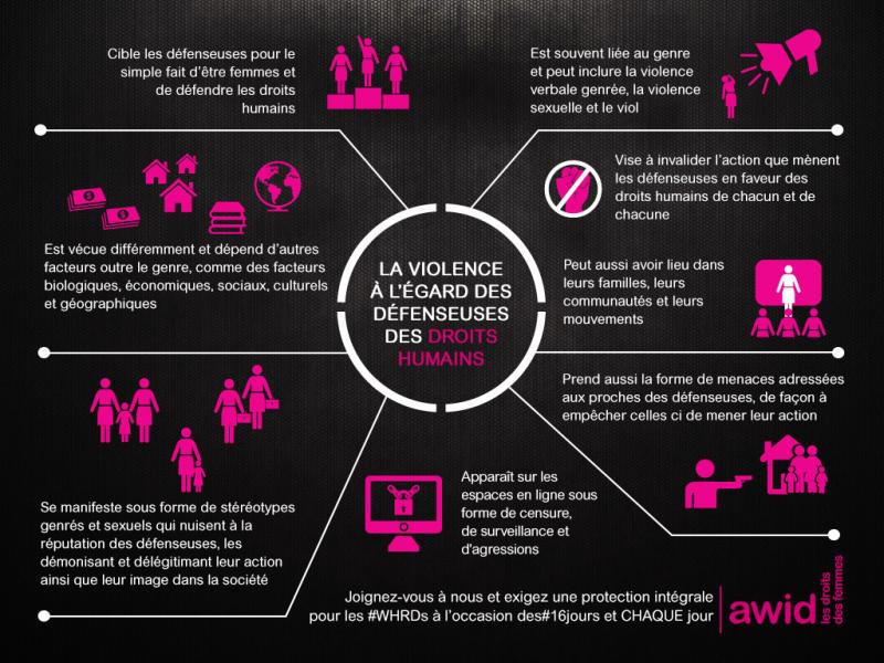 Cet ensemble de supports graphiques mettent en exergue des composants clés d’une protection intégrale pour les défenseuses des droits humains. Joignez-nous en partageant ces supports graphiques et en attirant l'attention sur la nécessité de fournir une protection intégrale pour les défenseuses des droits humains !