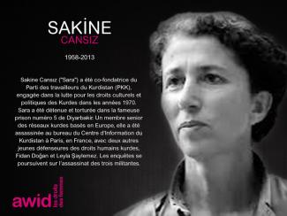 Sakine Cansiz 20 November 2020 Read in: Anglais Français Espagnol Category Droits économiques, sociaux et culturels Region Asie occidentale