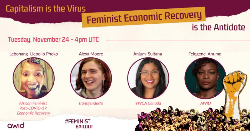 We invite you to participate in a global conversation, bringing together four feminist initiatives that have created blueprints for a feminist bailout and economic recovery.