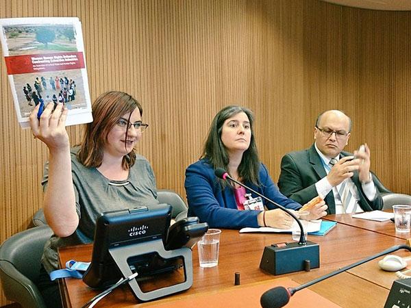 Inna highlighted the systematic violations, including killings, committed against WHRDs as a result of corporate power. She cautioned against calls for partnerships between human rights bodies and corporations, reminding the audience that “any dialogue with corporations will continue to be problematic in the current climate of global impunity”.