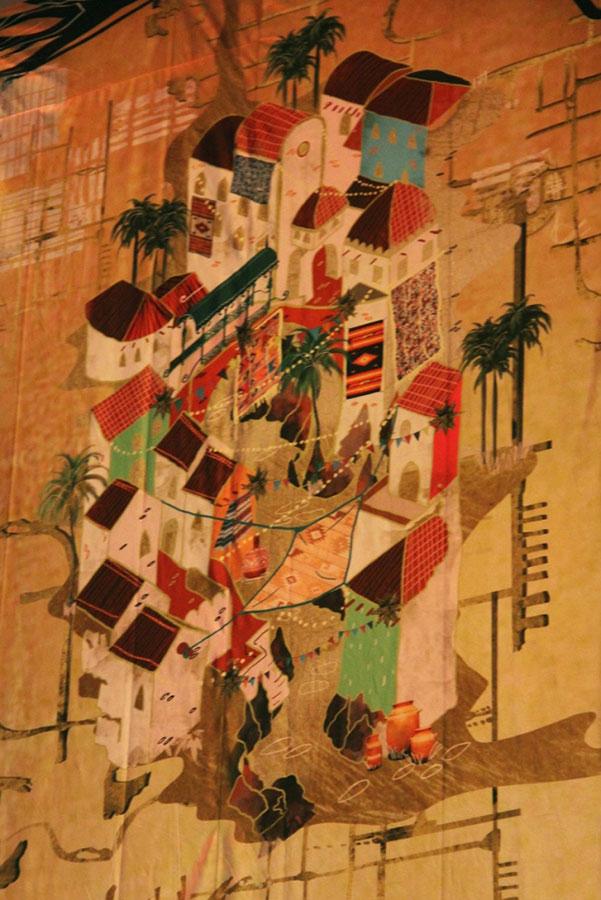 They navigated this geography using the concept of villages, brought to life by an enormous, richly illustrated backdrop hung on the stage behind the panelists. From a village to govern to a village to thrive, each theme was explored by a different panelist, weaving together different threads to create a vibrant vision of possibilities.