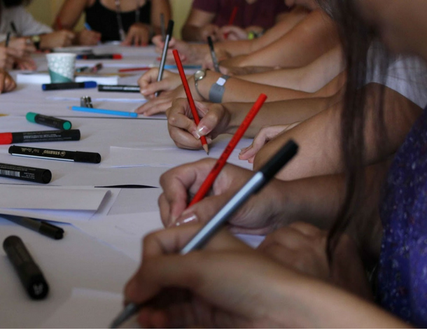 Participants at Chouftouhonna’s Fanzine workshop.