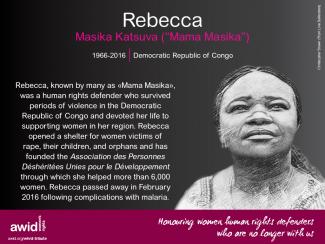 Ces défenseuses ont fait campagne pour les droits fonciers et ont lutté pour les droits des femmes et des peuples autochtones. Elles se sont opposées aux industries extractives, ont écrit de la poésie et se sont battues pour que l'amour prévale. L'une d'entre elles nous a quitté il y a dix-neuf ans. Nous vous invitons à vous joindre à nous pour rendre hommage à ces défenseuses, à leur travail et à l’héritage qu’elles nous ont laissé. Faites circuler ces mèmes auprès de vos collègues et amis ainsi que dans vos réseaux et twittez en utilisant les hashtags #WHRDTribute et #16Jours.