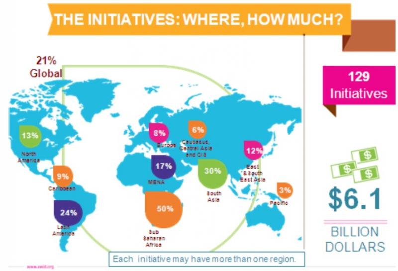 With that in mind, and in an effort to better understand who was involved and what drove this strong new interest around women and girls, AWID, in partnership with Mama Cash and supported by the Dutch Ministry of Foreign Affairs, embarked on a collaborative research effort. Reflected here are the results of a mapping of 170 initiatives, of which close to 150 had public data available. From this mapping, we found a total of USD 14.6 billion in commitments pledged between 2005-2020 to support women and girls.