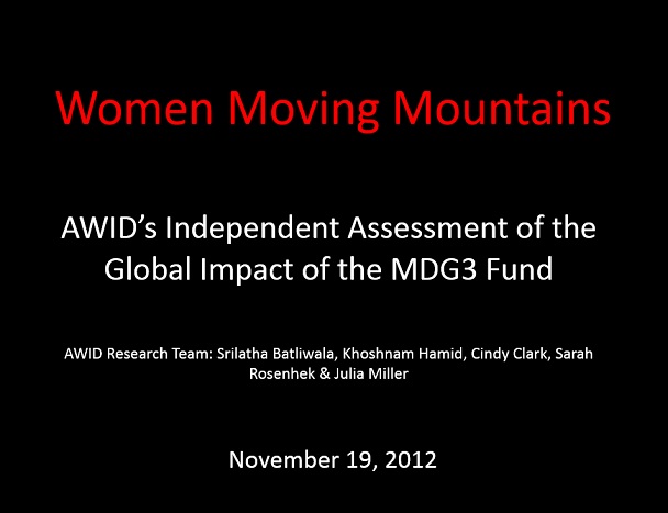 This “Women Moving Mountains” Powerpoint presents AWID’s preliminary assessment of the global impact of the MDG3 Fund.